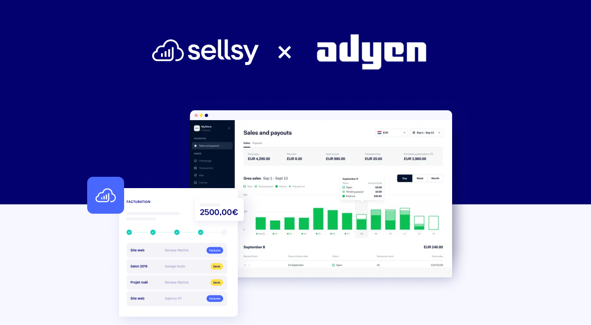 L'intégration entre Sellsy et Adyen est native et incluse dans votre licence facturation Sellsy.