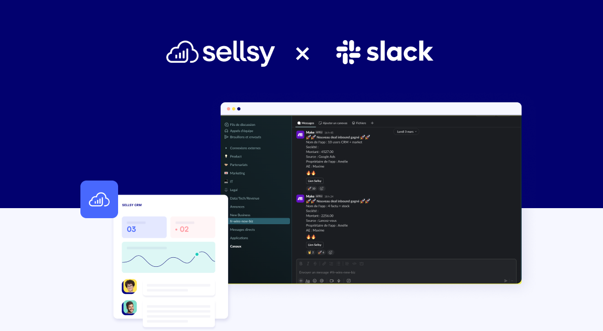 L'intégration entre Sellsy et Slack est possible via Make, à condition de disposer d’un compte Sellsy et d’un compte Slack.