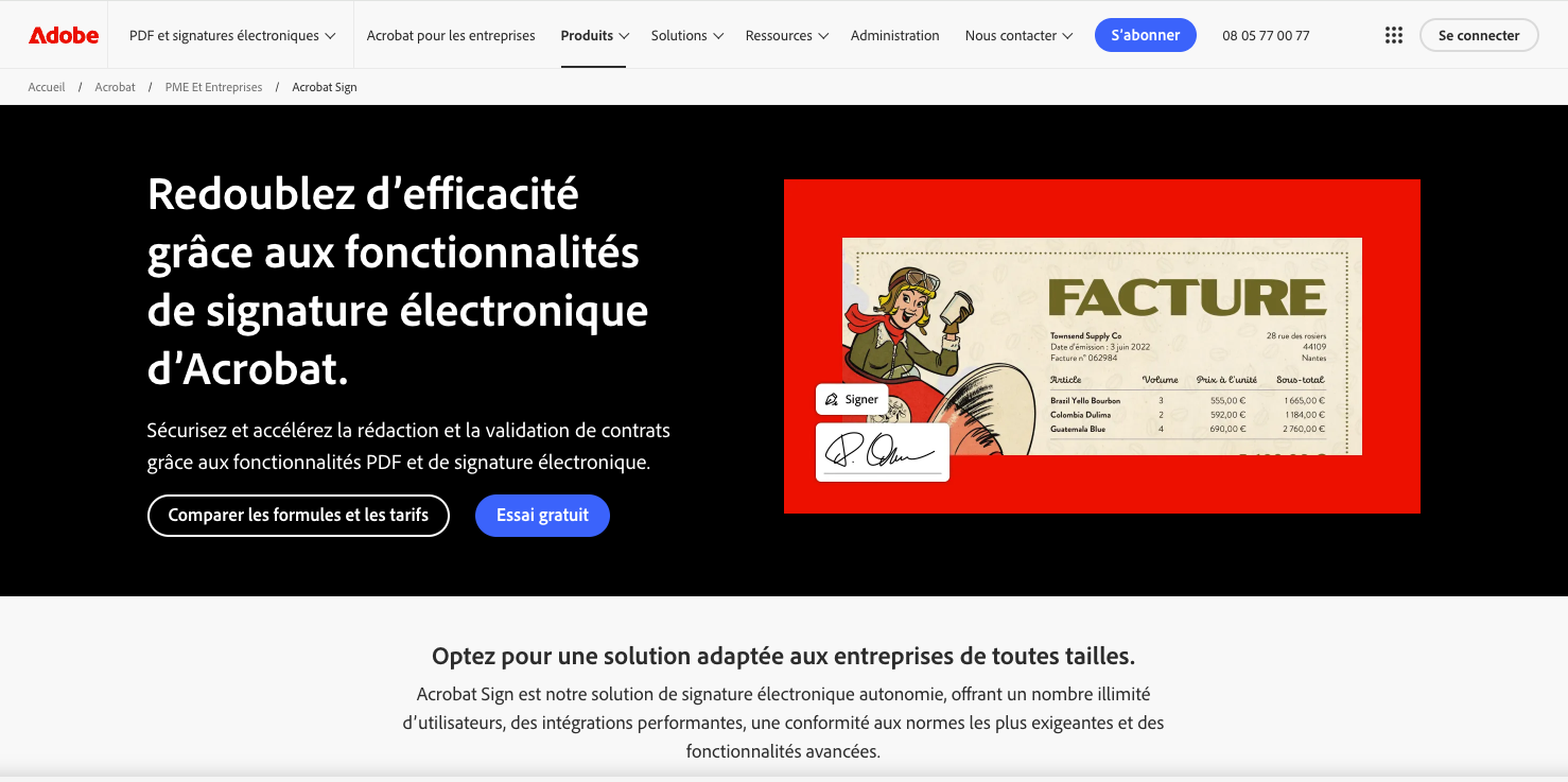 - L'écosystème PDF : Si vos équipes utilisent déjà Acrobat Pro au quotidien, l'ajout de la brique de signature est naturel.