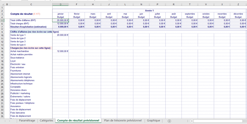- Nommer chaque catégorie (ex : « Ventes en ligne », « Marketing », « Salaires »).