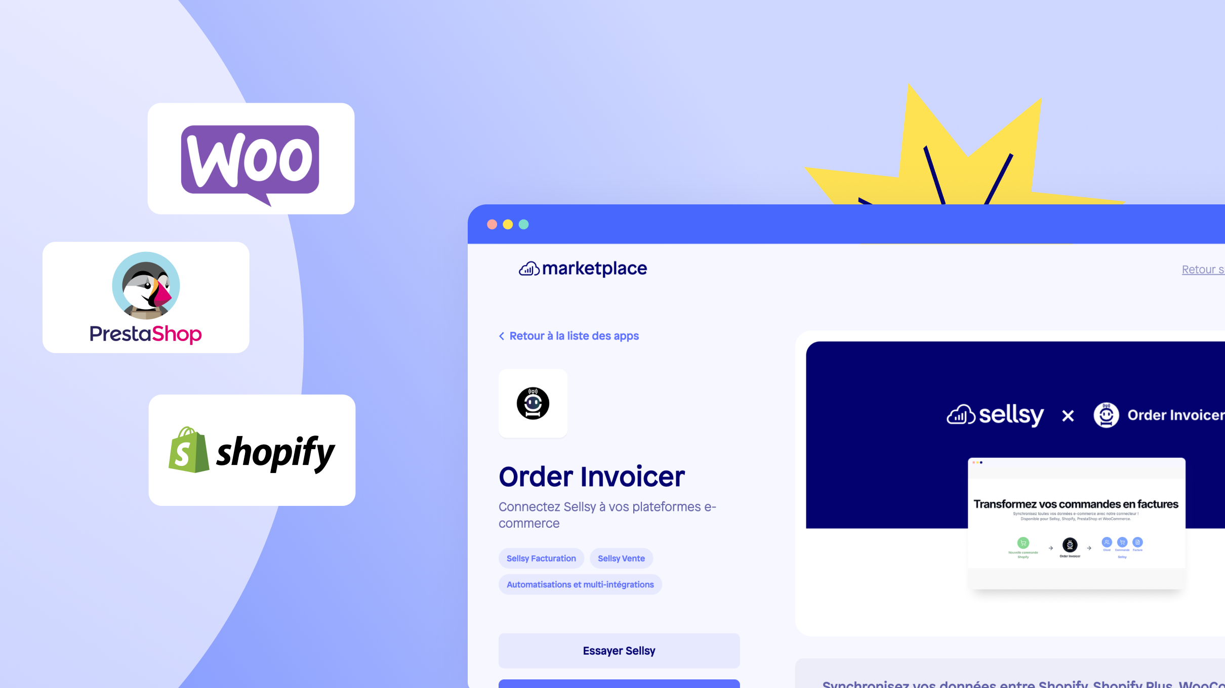 Les intégrations e-commerce via Order Invoicer sont incluses dans la licence Sellsy, avec jusqu’à 100 transferts mensuels entre vos boutiques et votre outil de gestion.
