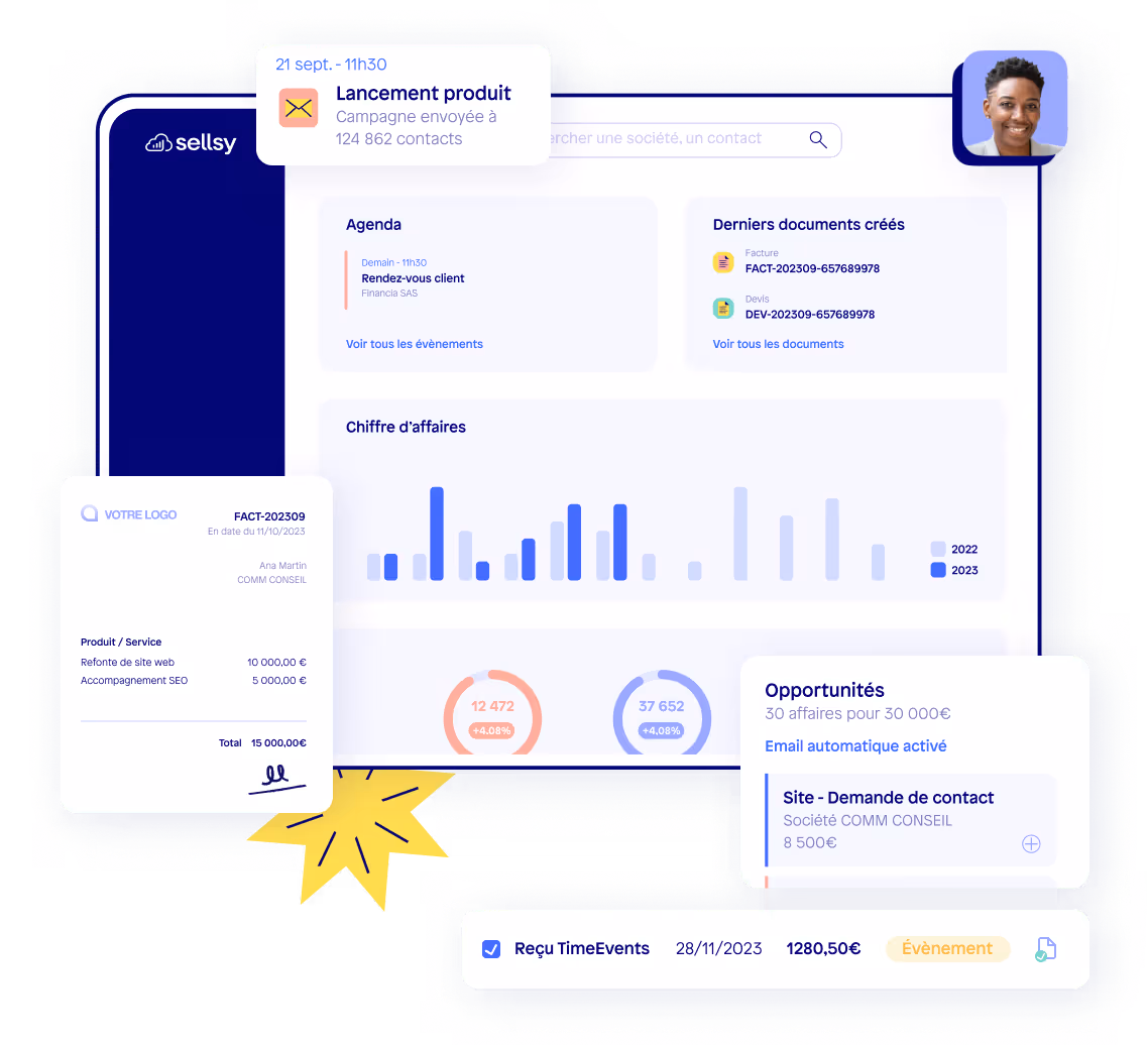 Les données que vous nous fournissez sont traitées par les services clients et marketing de Sellsy aux fins de : traiter vos demandes, vous permettre d’accéder à nos ressources en ligne, et d’utiliser notre Logiciel; vous envoyer des offres commerciales et marketing. Pour en savoir plus, consultez notre politique de confidentialité. Vous pouvez à tout moment demander, selon les cas, l’accès, la rectification, la limitation, l’effacement de vos données, leur portabilité, ou vous opposer au traitement de vos données à des fins de prospection en cochant la case prévue à cet effet. Pour exercer ces droits, contactez notre DPO à l’adresse dpo@sellsy.com.