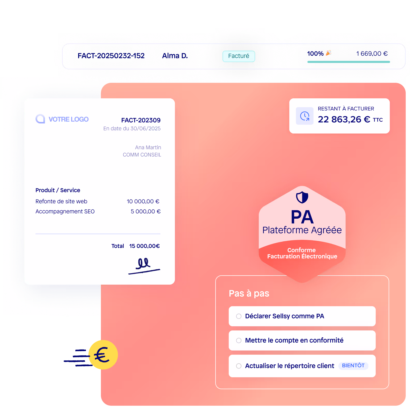 Envoyez et recevez vos factures en toute conformité avec une solution française, Plateforme Agréée pré-immatriculée.